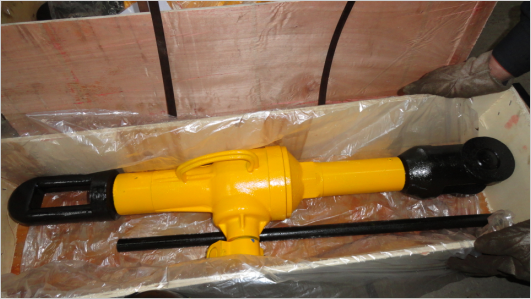 7、工作完畢,可將撐牙推向套筒上升方向,再插入手柄往返扳動,待松后再將拉力機取下。